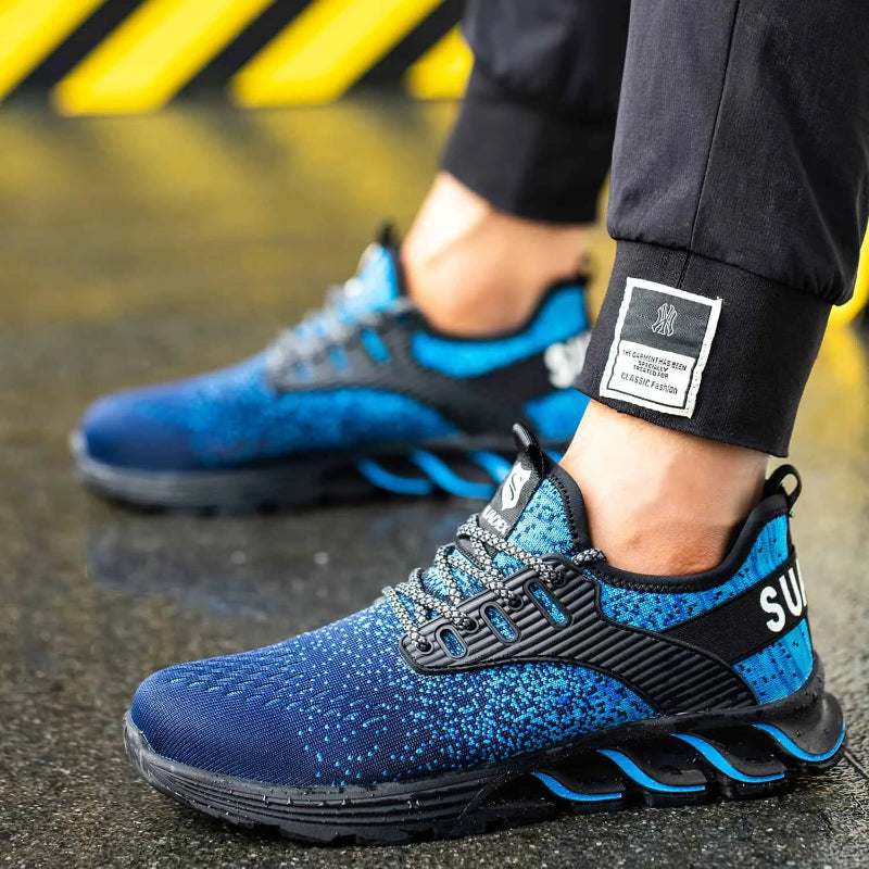 - Obermaterial: Das Obermaterial besteht aus atmungsaktivem Material. Die Spitze des Arbeitsschuhs ist eine Standard-Metallstahlkappe aus Edelstahl. Die Stahlspitze nach europäischem Standard kann 200 J bohren und der Druck kann 15.000 N erreichen